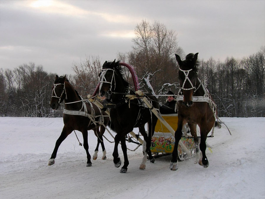 Птица-тройка, сани-розвальни, медвежья полсть — все это исконно русское и до щипания в носу родное. Как здорово прокатиться морозным утром по заиндевевшей улице в санях. Пушкин А.С. знавал в этом толк, когда звал свою красавицу морозным зимним утром прокатиться на тройке по первому снегу.